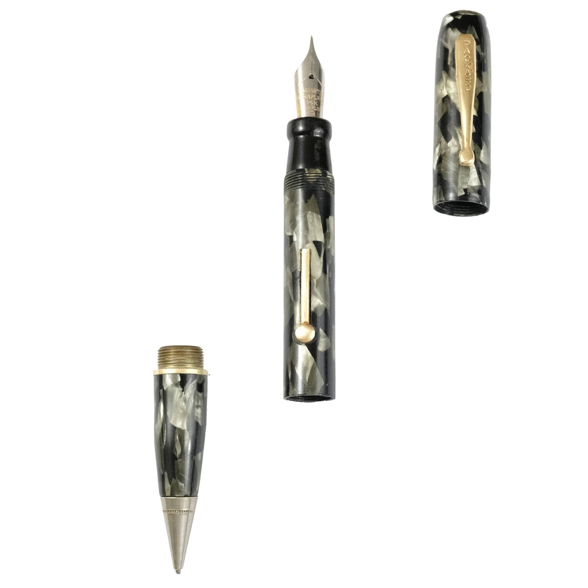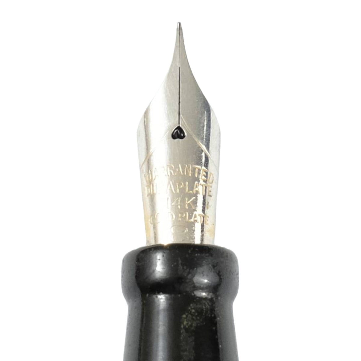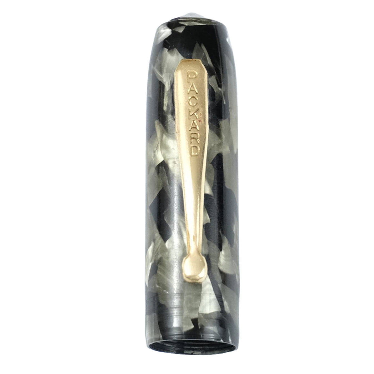 Barril y tapa de celuloide, clip y decoraciones doradas. Punto de acero.